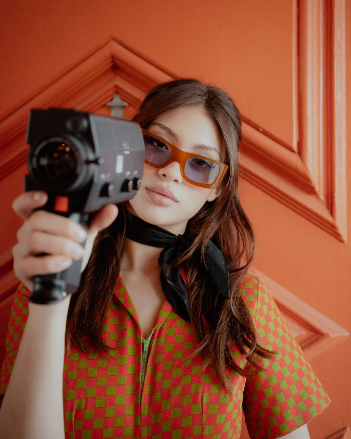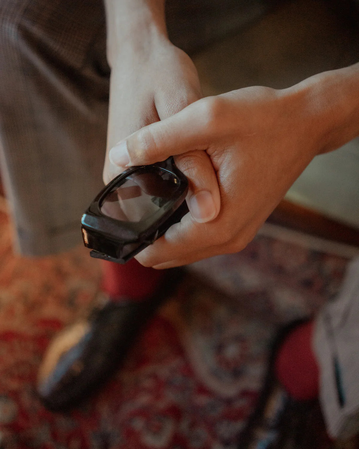 大胆な幅から絶妙にアップスウィープするテンプルの形状が、このミッドサイズのデザインを際立つシルエットにしている。